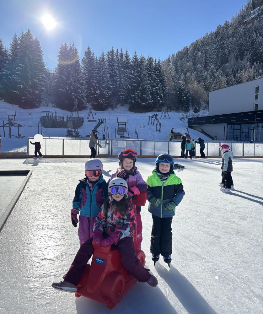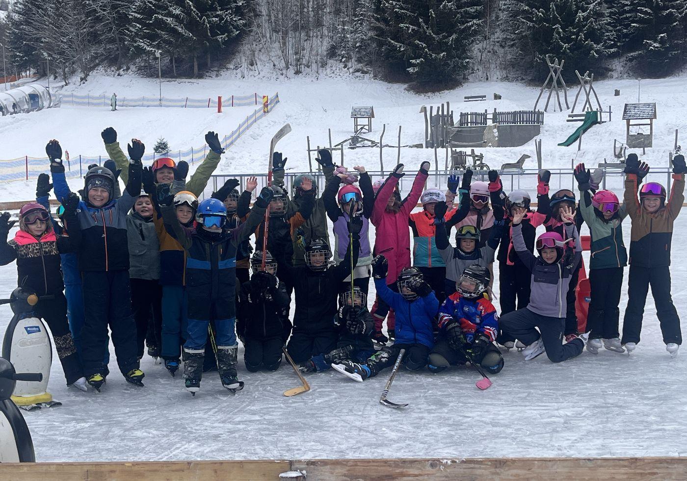 In dieser Woche ging es für alle vier Schulklassen im Sportunterricht auf den Eislaufplatz. Die 2. und 3. Klassen waren gemeinsam unterwegs, ebenso die 1. und 4. Klasse.