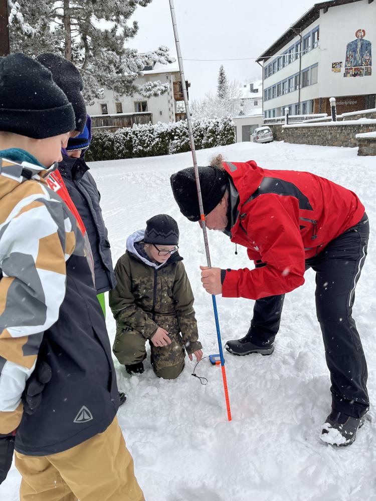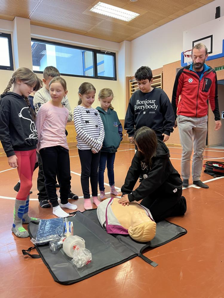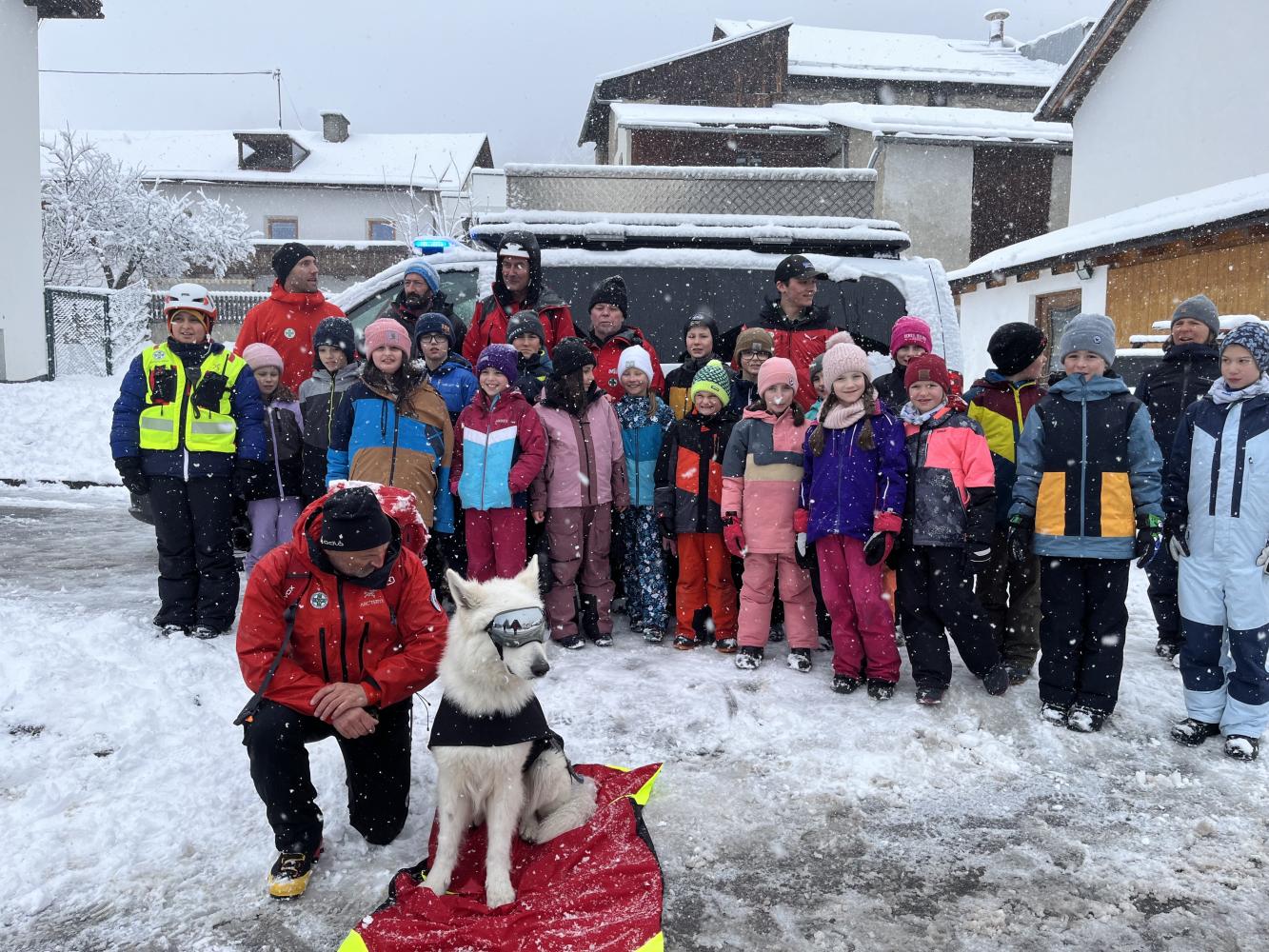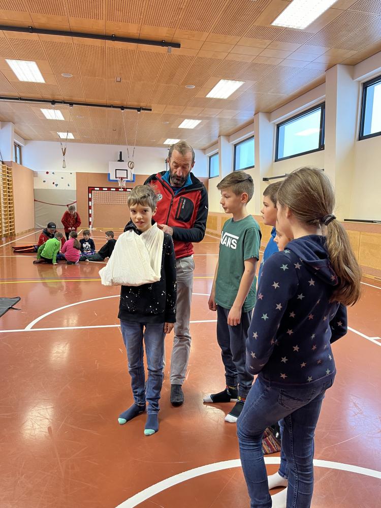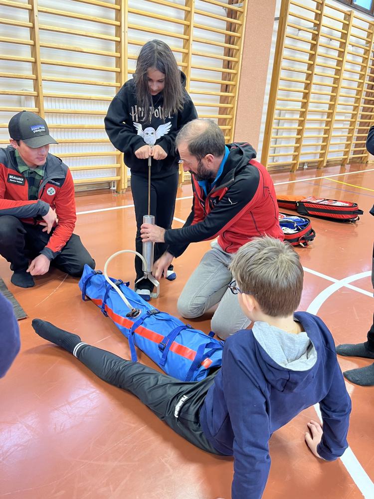 Am Freitag, den 23.02.24, stellte sich die Bergrettung Nauders den Kindern der 3. und 4. Klasse vor. An verschiedenen Stationen, die die SchülerInnen durchlaufen konnten, wurden Einblicke in die Tätigkeiten der Bergrettung gegeben. Suchhunde, Bergungen, Erste-Hilfe-Maßnahmen und Lawinensondierungen standen auf dem Programm.