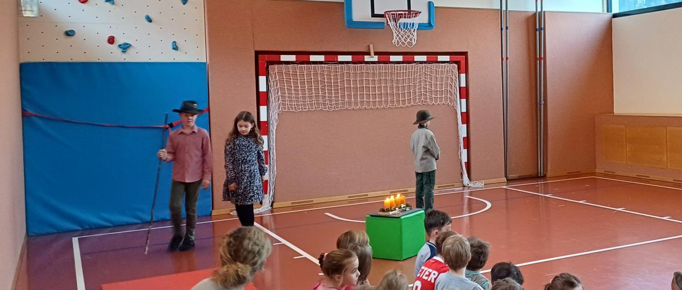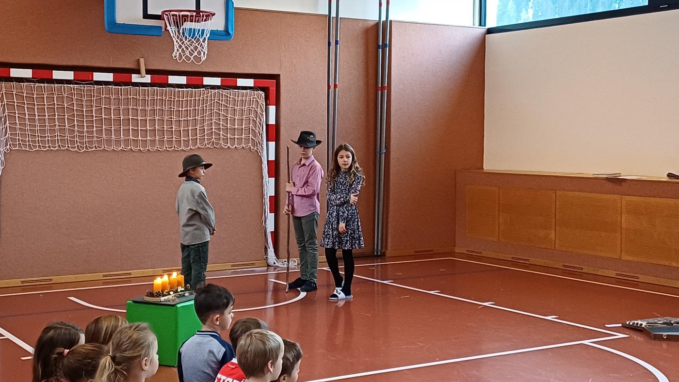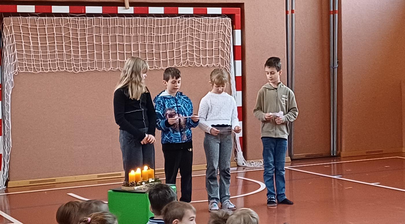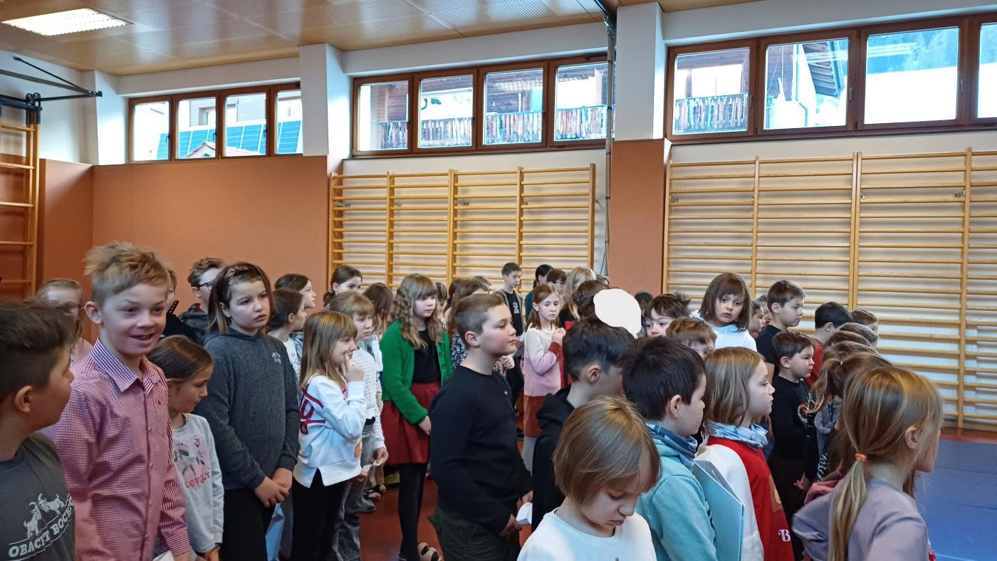 Heute erlebten wir eine besinnliche Weihnachtsandacht im Turnsaal der Schule, die von unserem Pfarrer abgehalten wurde. Auch die Kinder des Kindergartens waren mit Freude dabei. Gemeinsam sangen wir stimmungsvolle Weihnachtslieder, die uns auf das Fest einstimmten. Ein besonderer Moment war die musikalische Darstellung der Herbergssuche mit dem Lied "Poch, poch, poch". Zum Abschluss segnete uns der Pfarrer und gab uns seine guten Wünsche für die bevorstehenden Weihnachtsferien mit auf den Weg.