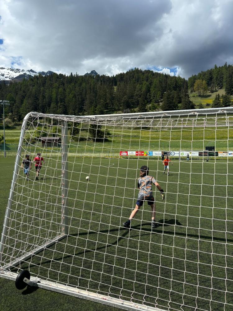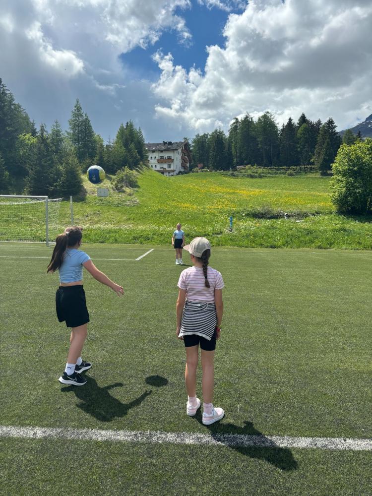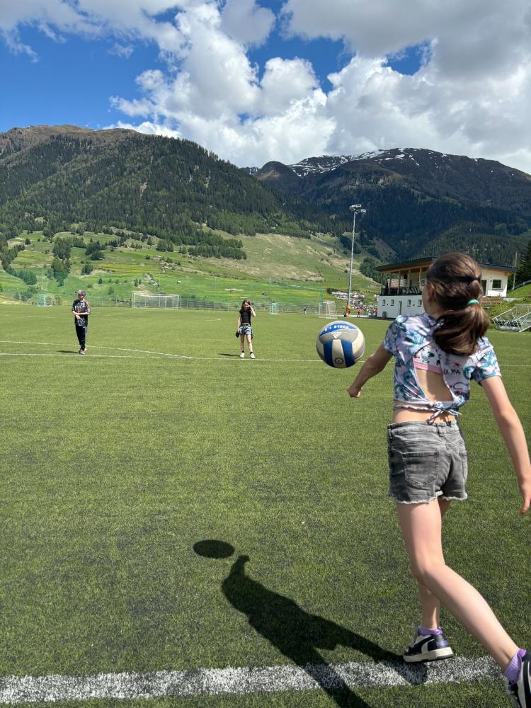 Am Mittwoch, den 14.05.25, verbrachte die 4. Klasse einen abwechslungsreichen Sportnachmittag am Fußballplatz. Die Kinder konnten zwischen Fußball und Volleyball wählen. Während die einen am Fußballfeld ihr Können zeigten, erklärte die Lehrerin den Volleyballer:innen verschiedene Techniken, die sie gleich mit viel Freude ausprobierten. Nach einer kurzen Pause stand ein gemeinsames Fußballspiel auf dem Programm – mit vollem Einsatz spielten Mädchen, Buben und sogar die Lehrerin begeistert mit. Zum Abschluss spazierten alle gut gelaunt zurück zur Schule. Beim Dorfbrunnen kühlten sich einige Kinder noch mit Wasser ab.