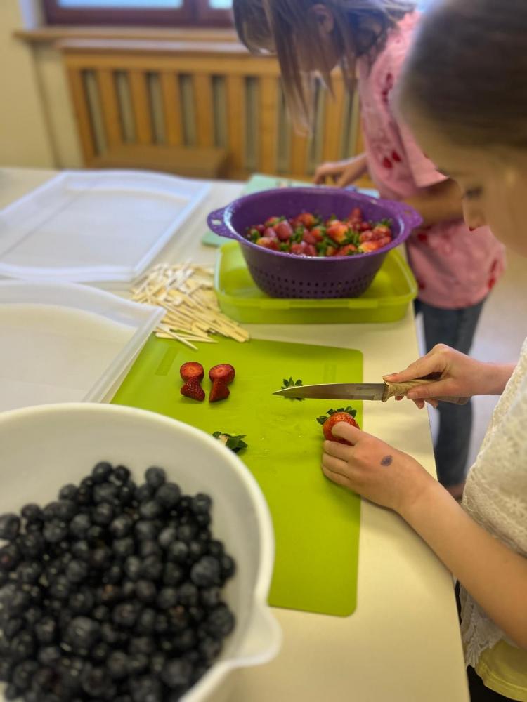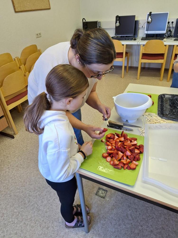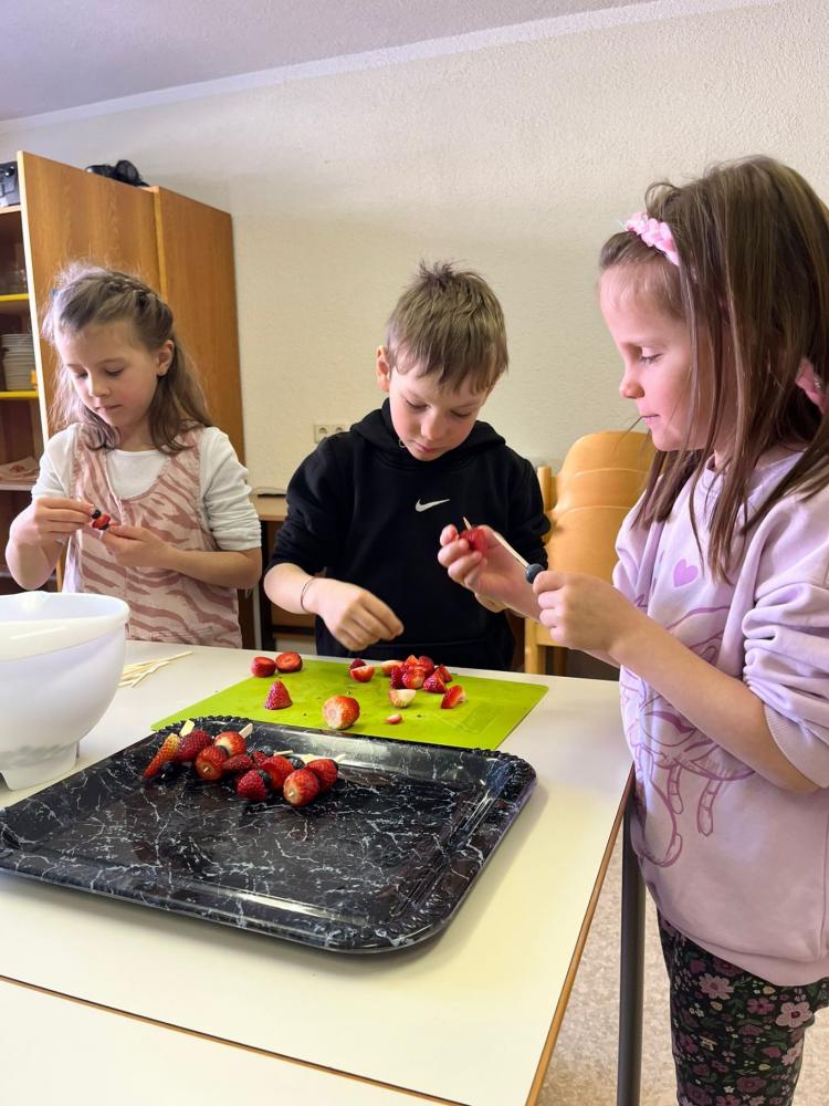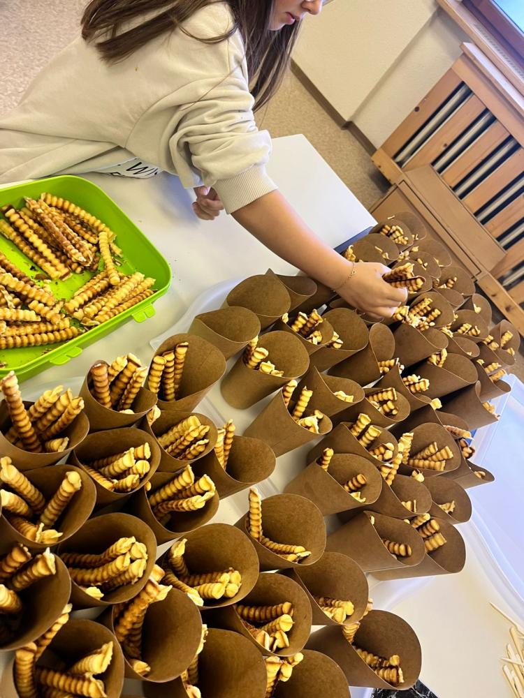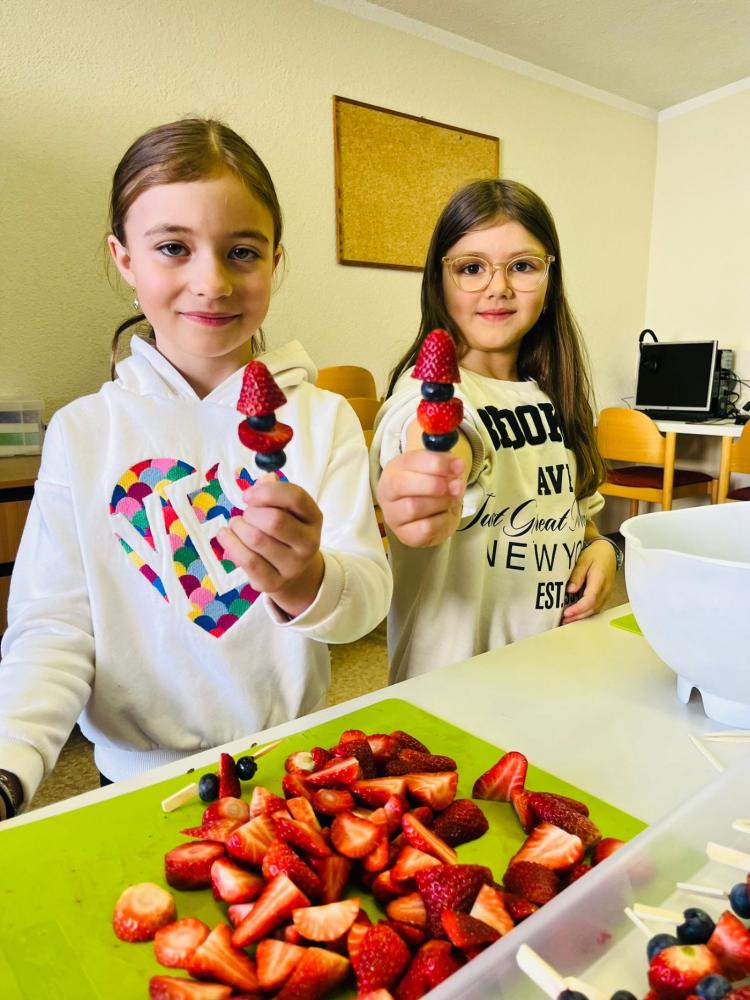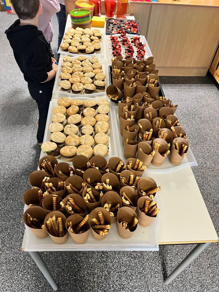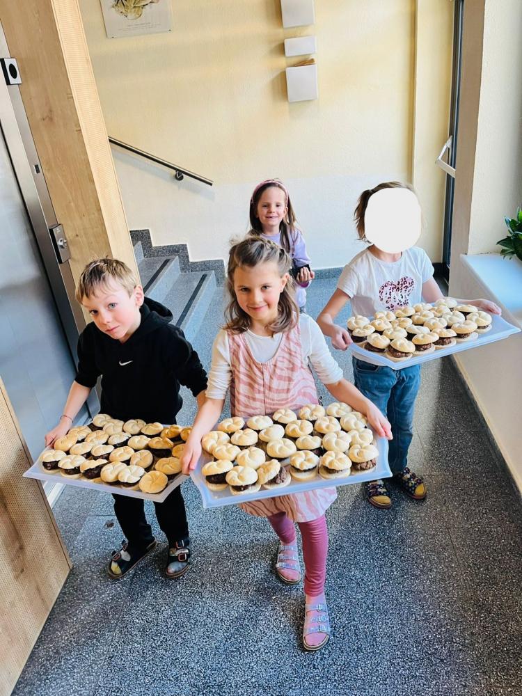 Mit tatkräftiger Unterstützung der Eltern wurden neben den Getränken wie Punsch und Himbeersaft auch Schulburger, Waffelpommes sowie Früchtespieße vorbereitet. Nachdem das Buffet liebevoll angerichtet war, startete der Verkauf der Speisen und Getränke. Die Gesunde Jause war ein voller Erfolg und fand großen Anklang.