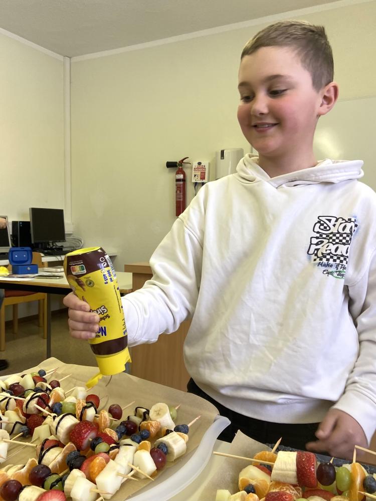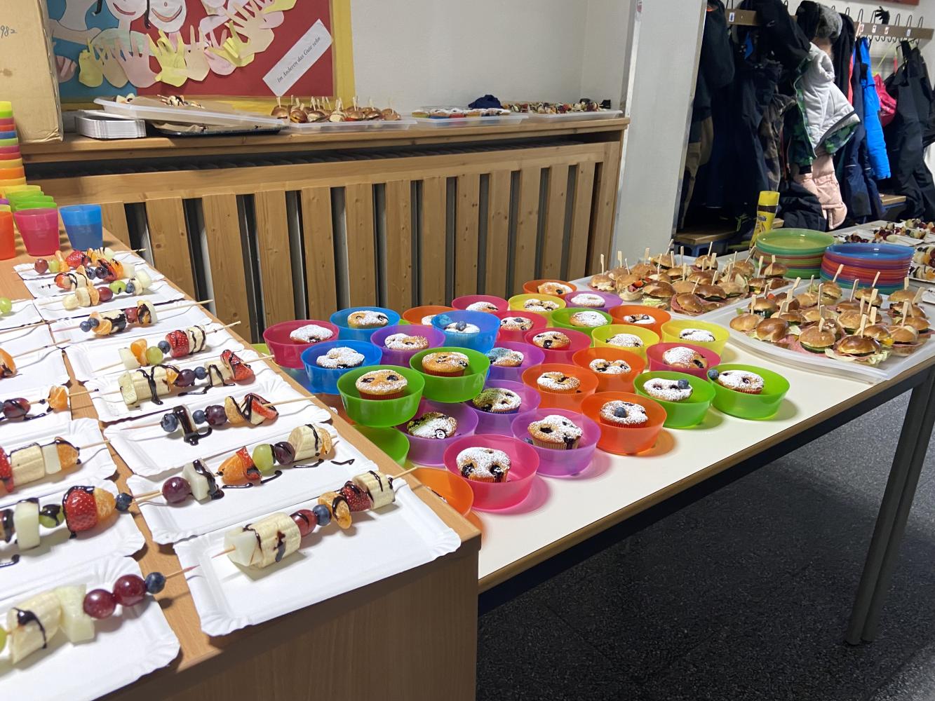 Am Mittwoch, den 29.01.25, war es wieder so weit und die Gesunde Jause fand statt. Die 2. Klasse richtete ein tolles Buffet an. Mit Unterstützung der Eltern wurden neben Getränken wie Früchteeistee noch Heidelbeermuffins, Mini-Laugenburger und Obstspieße vorbereitet. Nachdem das Buffet fertig angerichtet war, konnte es mit dem Verkauf der Speisen und den Getränken losgehen.