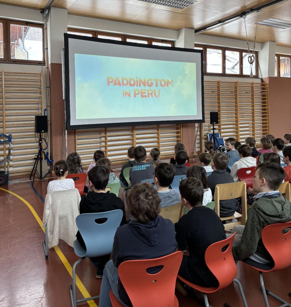Heute besuchte uns das Medienzentrum und machte unseren Turnsaal kurzfristig zum Filmraum. Gezeigt wurde der Film "Paddington in Peru". Darin reist Paddington in seine Heimat nach Peru und erlebt dort gemeinsam mit seiner Familie ein spannendes und zugleich lustiges Abenteuer.