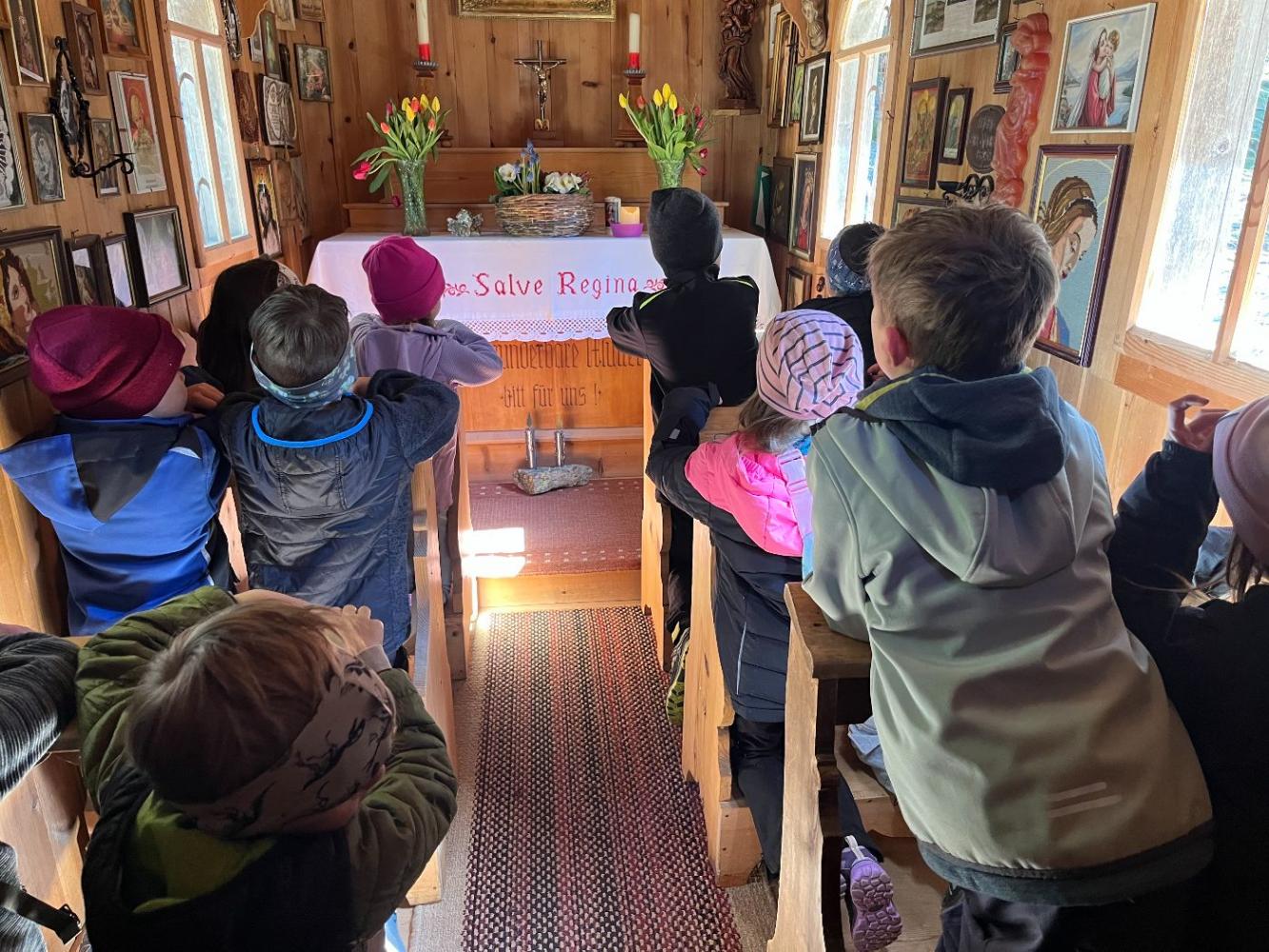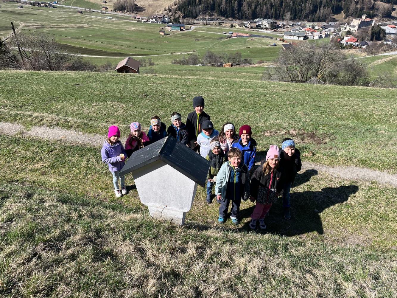 Kreuzweg nach Rieses von Simone Wachter 29. April 2025 1 2024/25 In der Fastenzeit machten sich die Schüler:innen der 1. Klasse gemeinsam auf den Weg und gingen den Kreuzweg nach Rieses. An den einzelnen Stationen wurde über das Leiden Jesu gesprochen und gemeinsam innegehalten.