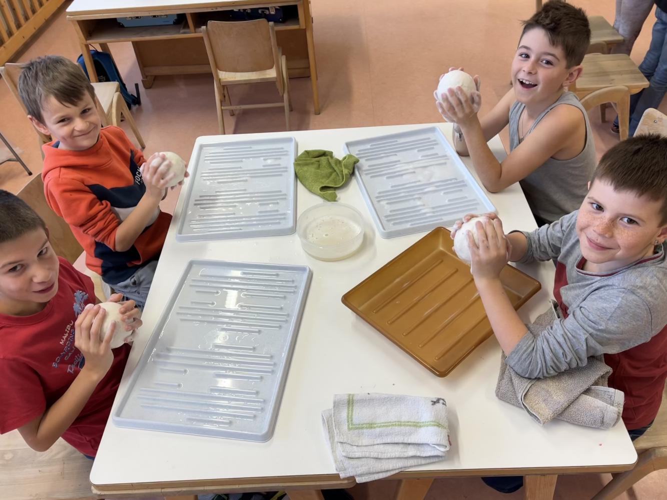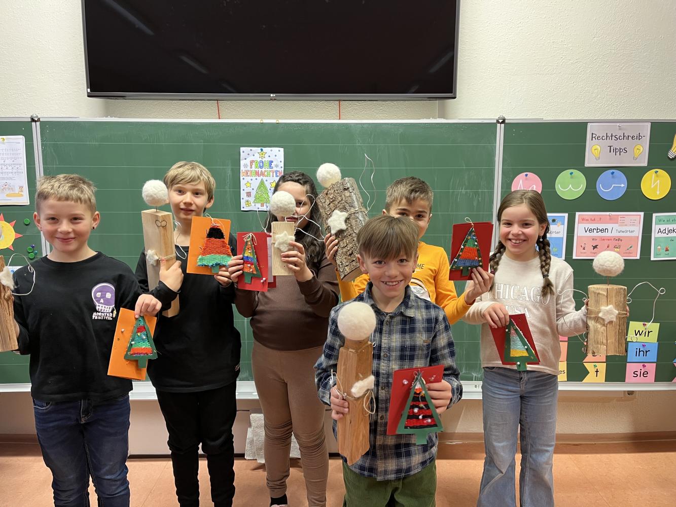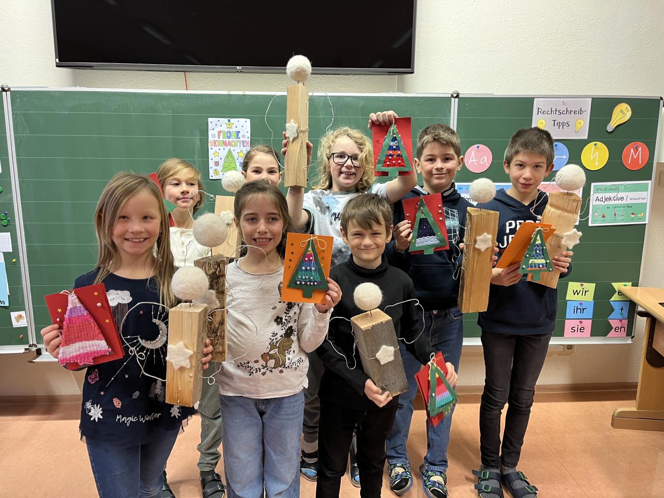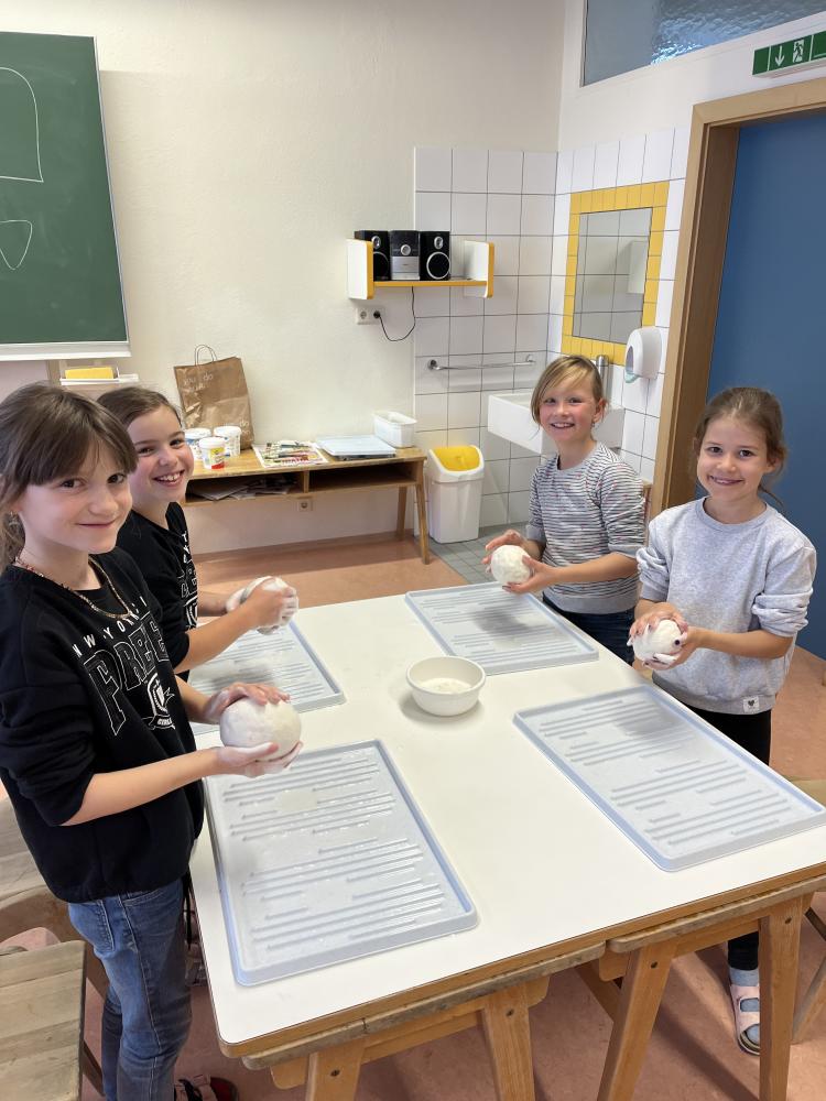 In der Adventszeit wagte sich die 3. Klasse an das Nassfilzen heran. Mit Schmierseife, warmen Wasser, Wolle von regionalen Tiroler Bergschafen (Schafwollfabrik Ried-Frauns) und viel Geduld wurden Köpfe gefilzt. Am Ende wurden alle Einzelteile wie Holzscheit, Filzkugel und aus Draht geformte Flügel zu individuellen Einzelstücken zusammengefügt. Die Freude über das gute Gelingen der Holzscheit-Engel ist in den Gesichtern der Kinder ablesbar.