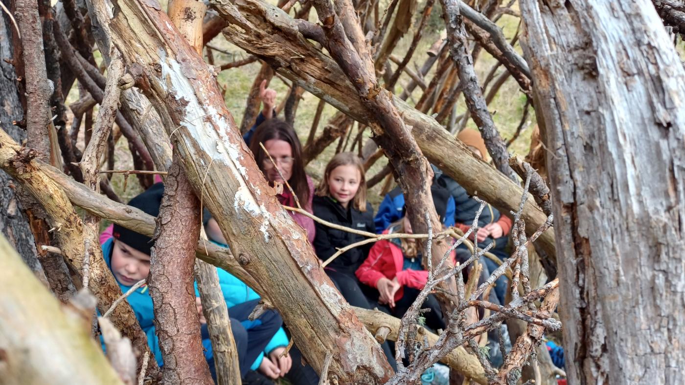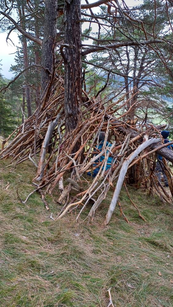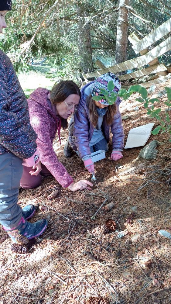 Auch die 2., 3. und 4. Klasse verbrachte einen ganzen Vormittag am Mösle. Nach einem sportlichen Vorstellungsspiel sammelten die Kinder ebenso Naturmaterialien, die zeigen, dass nun der Herbst da ist. Jede Klasse bekam dann die Aufgabe, die gesammelten Sachen in Form eines Eichhörnchens anzuordnen. Besonders kreativ wurden die Kinder beim Erbauen eines Kobels, eines Eichhörnchen-Nests. Die „Eichhörnchen-Kunstwerke“ sowie die Kobel der einzelnen Klassen können in der Bildergalerie betrachtet werden. Nach dem Bau wurde auf spielerische Weise den Kindern beigebracht, dass das Eichhörnchen im Herbst viele wichtige Vorbereitungen für den anstehenden Winter treffen muss. Nach einer ausgiebigen Essenspause wurden die Kinder noch zu Foscher:innen. Mit einem kleinen Behälter, einem Löffel, einem Pinsel und einer Lupe ausgestattet wurden sie losgeschickt, um im Wald nach verschiedenen Bodentieren zu graben und diese vorsichtig in ihrem Becher einzufangen. Dabei wurden die unterschiedlichsten Tiere gefunden und die Entdeckerfreude bei den Kindern geweckt.