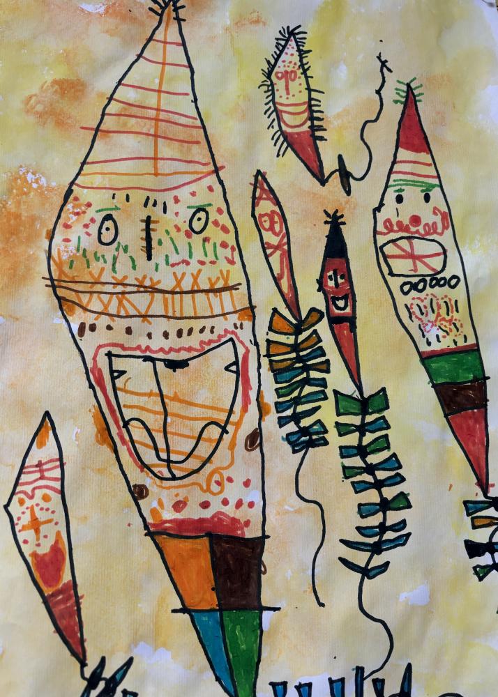und malt die Blätter an,