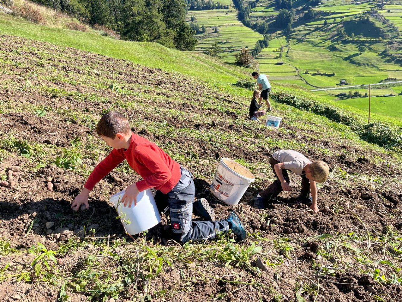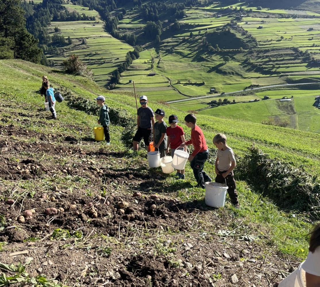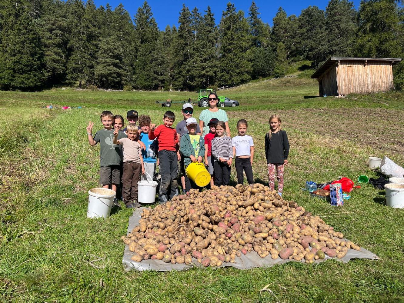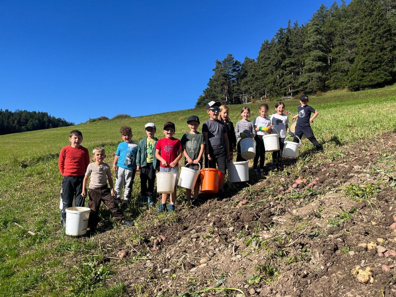 Am Freitag, dem 19.09.2025, durfte die 2. Klasse gemeinsam mit der Familie Waldegger Kartoffeln ernten. Die SchülerInnen waren mit großem Eifer dabei und wurden anschließend mit Saft und köstlichem Zucchinikuchen belohnt.
